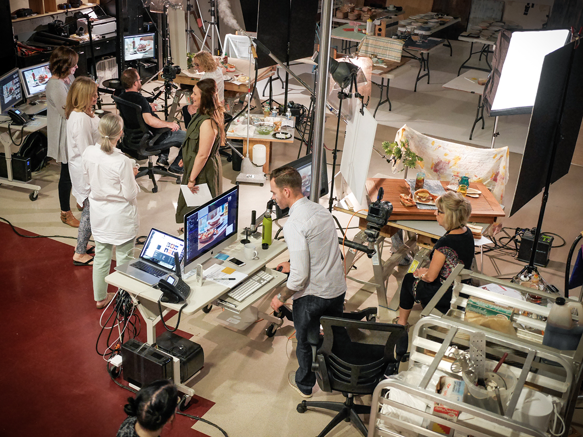 Multiples. Of everything. From sets to food stylists, plates to hero bottles. Being able to run multiple setups concurrently allowed the shot list to be attacked aggressively. And speaking of multiples, our retouchers upstairs worked closely with Brandon to get these images ready for their big moment.