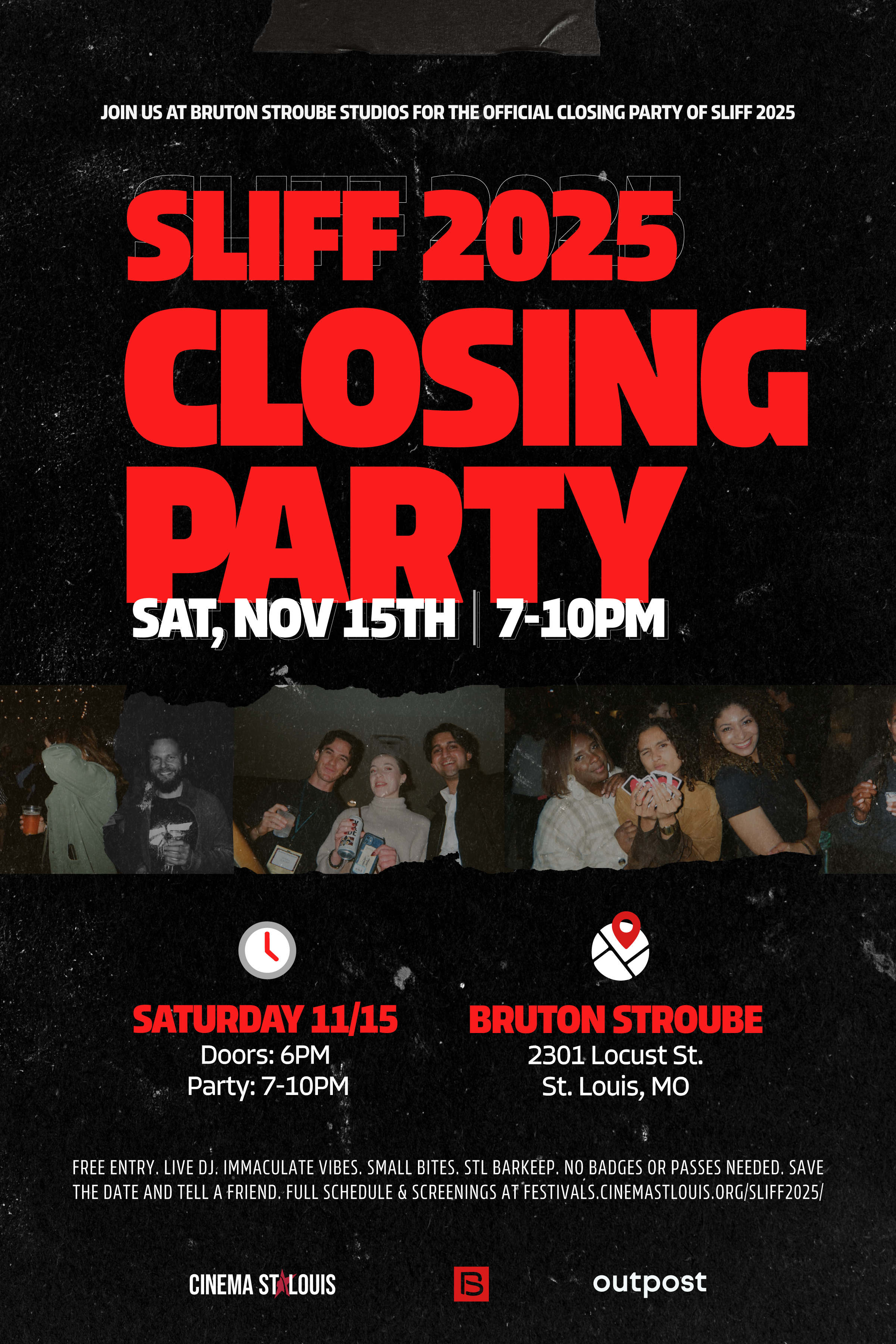 One night. Our studio. Live DJ. Immaculate vibes. Small bites. STL Barkeep. Film photos. NO tickets, badges or passes needed. Save the date and tell a friend. CLOSE OUT SLIFF 2025 WITH US.